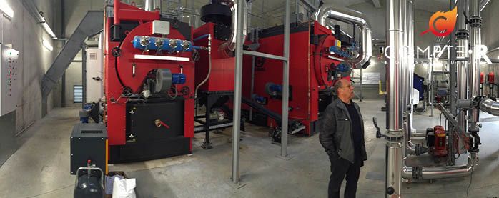2 chaudières bois COMPTE.R l’une de 1 200 KW l’autre de 560 KW couvrent 96 % des besoins de chauffage et eau chaude sanitaire du réseau de chaleur.