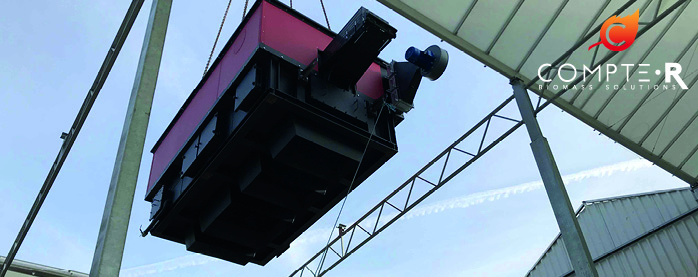 Le montage des chaudières COMPTE.R de puissance de 2 MW chacune a eu lieu malgré les conditions climatiques difficiles. Nos techniciens ont bravé la tempête qui a touché les îles britanniques début février afin de pouvoir rentrer par le toit au plus vite les parties les plus grosses des chaudières et ainsi permettre de couvrir le bâtiment de la chaufferie avec sa toiture.